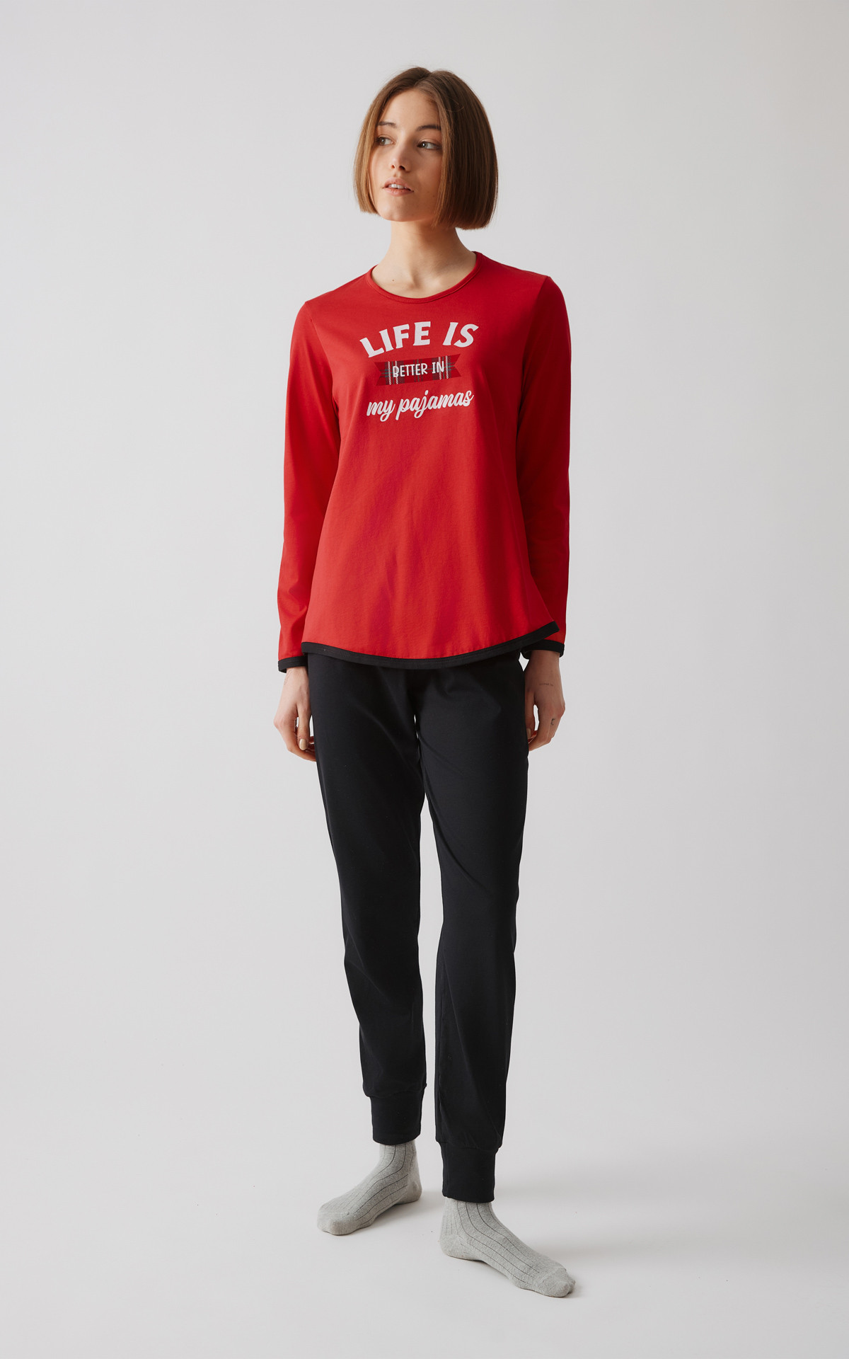 - Χειμερινή πυζάμα από 100% βαμβάκι, υψηλής ποιότητος. Το σετ περιλαμβάνει μπλούζα μακρυμάνικη με στρογγυλή λαιμόκοψη και παντελόνι με μπάσκες στα τελειώματα, σε διάφορους χρωματικούς συνδυασμούς μονόχρωμου και τυπωμένου υφάσματος.
