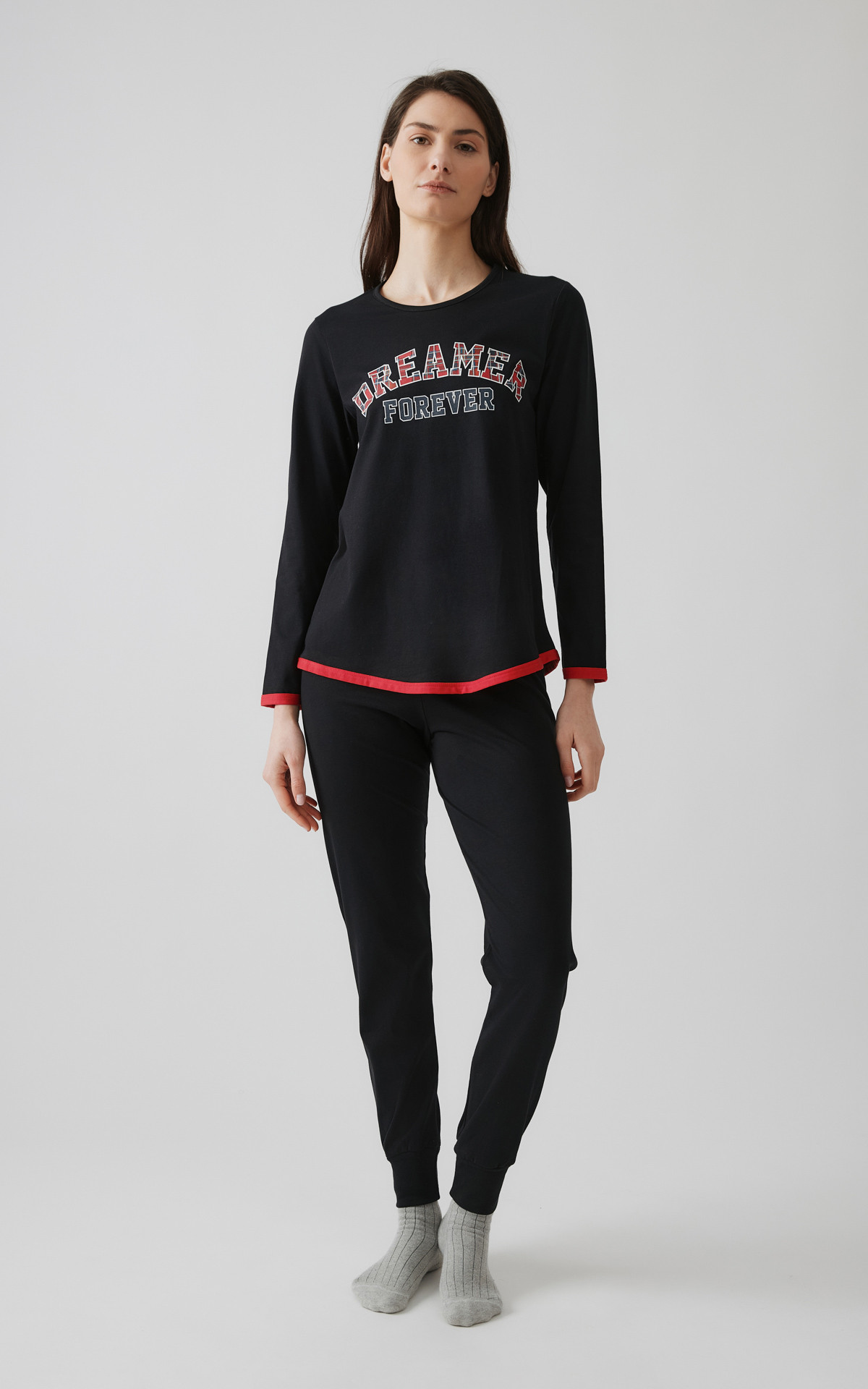 - Χειμερινή πυζάμα από 100% βαμβάκι, υψηλής ποιότητος. Το σετ περιλαμβάνει μπλούζα μακρυμάνικη με στρογγυλή λαιμόκοψη και παντελόνι με μπάσκες στα τελειώματα, σε διάφορους χρωματικούς συνδυασμούς μονόχρωμου και τυπωμένου υφάσματος.
